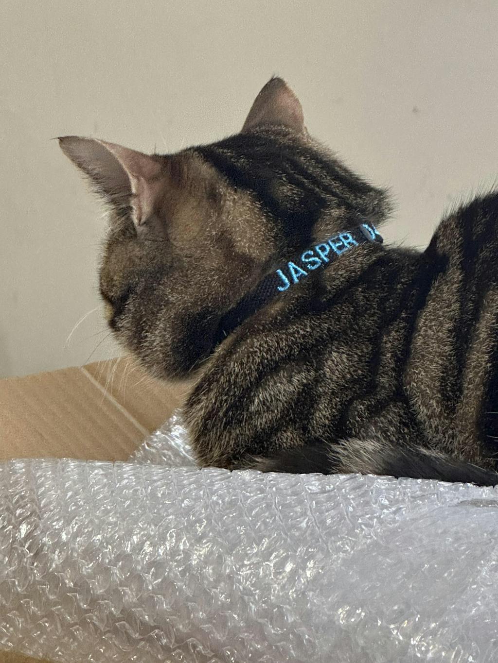 Personalised Cat Collars are made from high quality spun polyester with your pet’s name embroidered onto the lead to match their Personalised collar. The breakaway clip ensures your cat gets away safely and doesn't get stuck by the collar when out exploring or around the home and the bell helps other animals safe.
