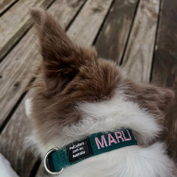Border Collies are clever, quick, and full of energy – and they deserve a collar that can keep up. At PetCollars.com.au, we design personalised collars for Border Collies that are strong, stylish, and built to move. Embroidered with your dog's name and your contact number, our collars are practical for active dogs who love to run, work, and play. With 300+ colour combos and a perfect fit for every size, your Border Collie will stand out for more than just their smarts.