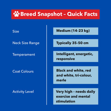 We recommend these products for Border Collies – known for their energy, intelligence, and drive. Just make sure to measure your dog’s neck, as they can vary depending on build and coat type.