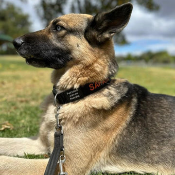 German Shepherds are intelligent, loyal, and powerful – they need a collar that’s just as strong and reliable. At PetCollars.com.au, we craft personalised dog collars for German Shepherds that balance durability with everyday comfort. Embroidered with your dog’s name and your contact number, these collars are made to handle everything from park walks to serious work. With over 300 colour combinations, your Shepherd will not only be secure but stylish too.