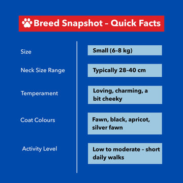 Small, sturdy, and full of heart, the Pug is a born entertainer. They love to nap, cuddle, snack, and occasionally surprise you with a burst of zoomie energy.